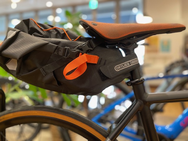 サドルバッグは防水性能に定評のある、ドイツのブランド「ORTLIEB」製品をチョイス。