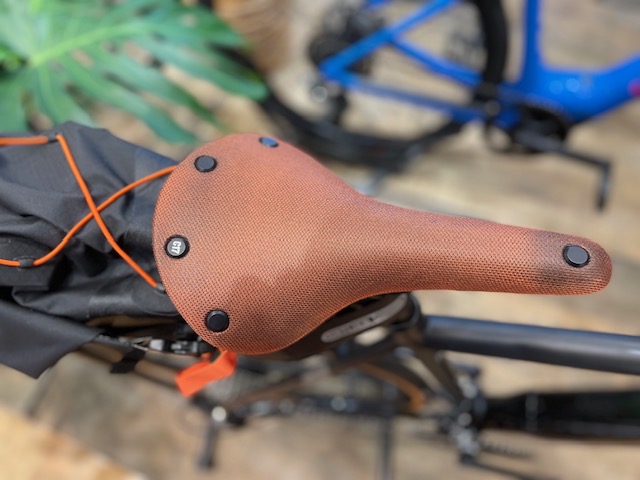 フレームカラーはシックなマットブラックのため、このブラウンがバッグを外した際にアクセントにもなります。