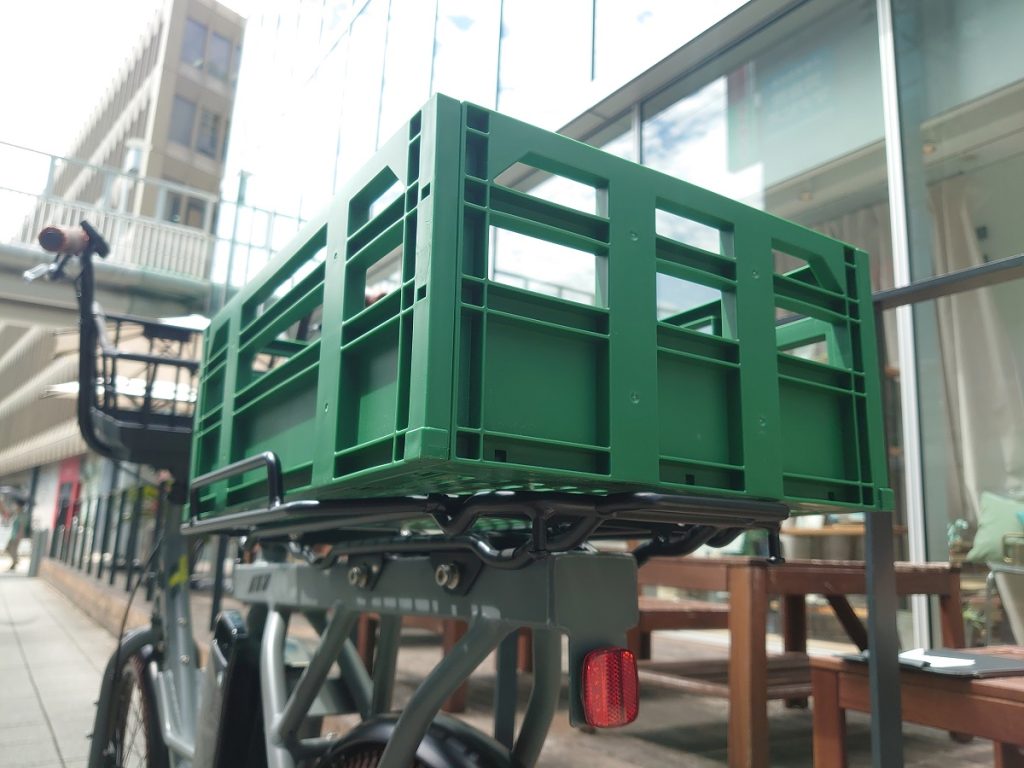 こちらのカスタムを施す場合、漕ぐ際の膝との接触が気になるところですが、ログワゴンeは元々サドルシートとハンドルまでの空間が広めに取られているため、ペットキャリーカスタムにおあつらえ向きの車体と言えます。