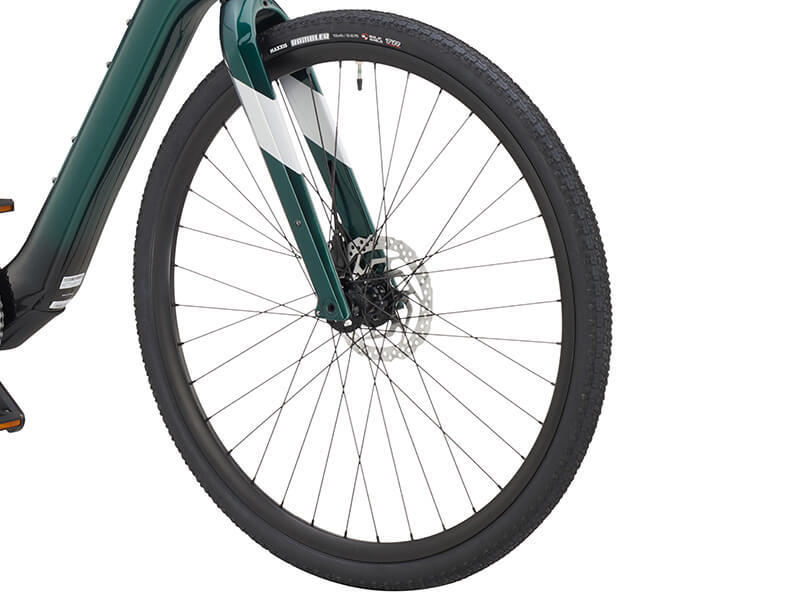 標準仕様では、走行性能と安定性のバランスに優れた太めのオールロードタイヤを採用しています。オンロードでもグラベルでも快適に走れる、万能な仕様です。