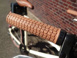 サドルやタイヤと共にブラウンで統一されたラバー製グリップ。