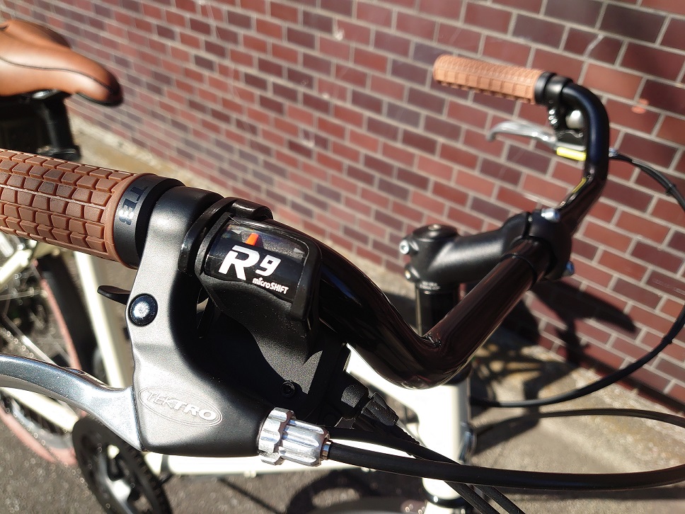 サドルやタイヤと共にブラウンで統一されたラバー製グリップ。