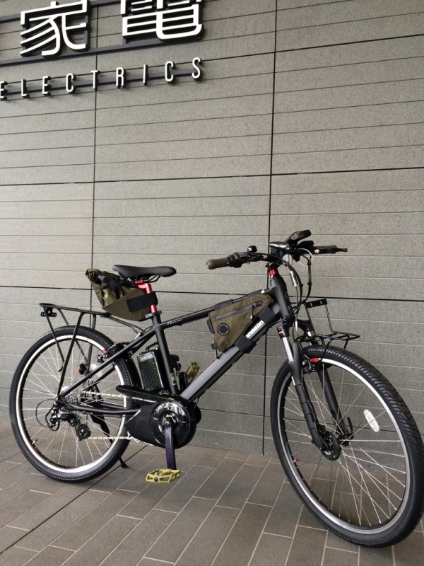 モトベロ二子玉川では、PANASONICから発売されております。マウンテンバイクタイプ電動アシスト自転車〔ハリヤー〕を軸に、各種バックを取り付けカスタムコンプリートモデルとして展示販売をしております。