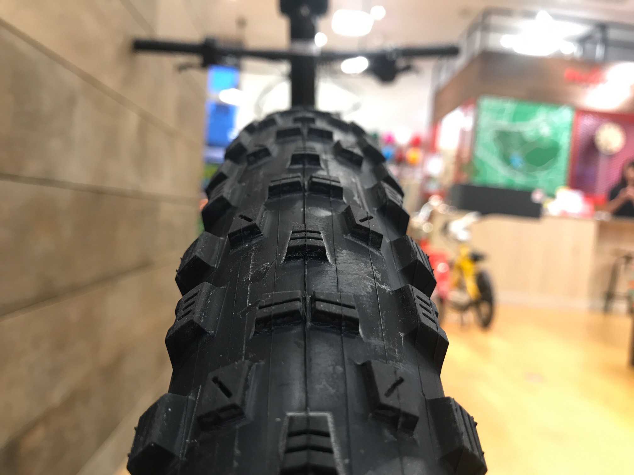 まずタイヤはMAXXISのFOREKASTER 27.5×2.35。高いノブと均等なタイヤパターンによりマッドな土道でも問題なく、2.35のタイヤ幅により、未舗装のオフロードでも舗装されているオンロードでも快適に走行ができます。
