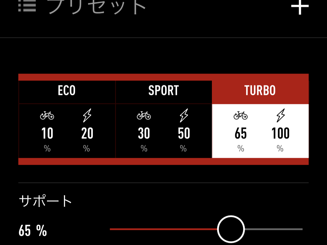 バイクの積算距離やバッテリー、モーターのコンディションを確認する「診断」モードや、「チューン」モードでは要の「ECO」、「TRAIL」、「TURBO」それぞれのアシストモードのパラメーターの調整が可能となっており、好みのアシストバランスを作成し数パターン名前を付けて保存することが出来ます。