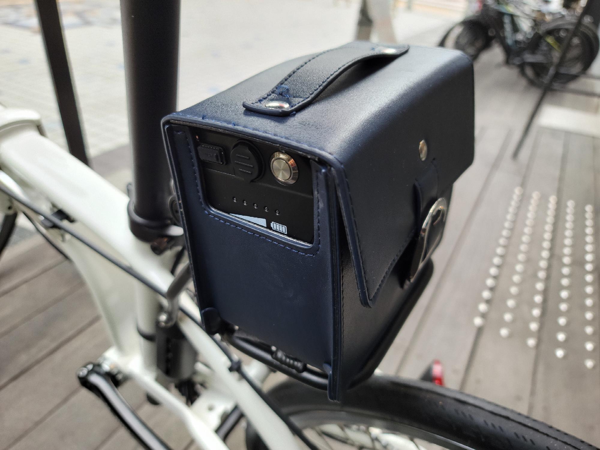 バッテリーはグレーカラーのレザーバッグに内蔵され、一見するとカメラの収納バッグのようなオシャレさ。