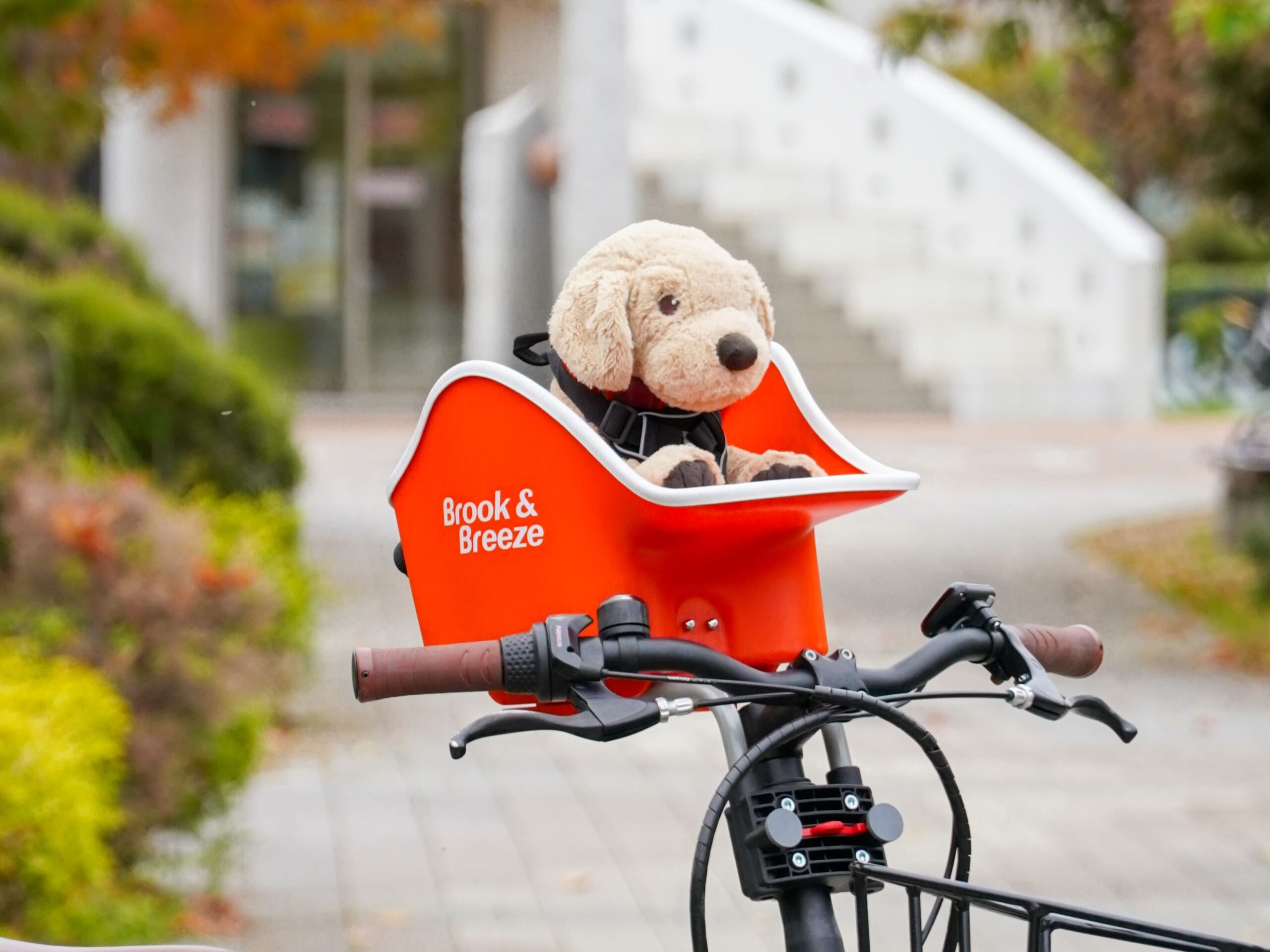 Canine Copilot は、ワンちゃんの重心がライダーの腕の間=身体の中心に近い位置にくるよう設計されており、バランスが取りやすいのが特徴。前輪や後輪に取り付ける一般的なバスケットと異なり、曲がる際のふらつきが少なく、安全に操作できる設計となっています。