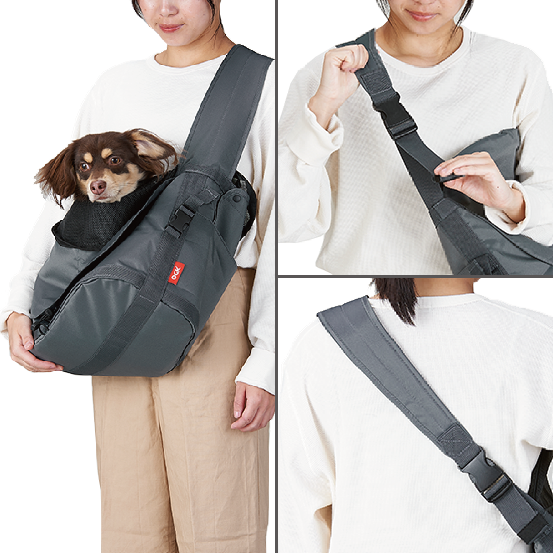 気軽にペットとお出かけできるスリングに、自転車バスケットへ積載できる機能を搭載した2Wayペットスリング。底面には振動吸収クッションを採用し、自転車での振動による負担を約60%軽減。もしもの転倒時も飛び出さず安全です。