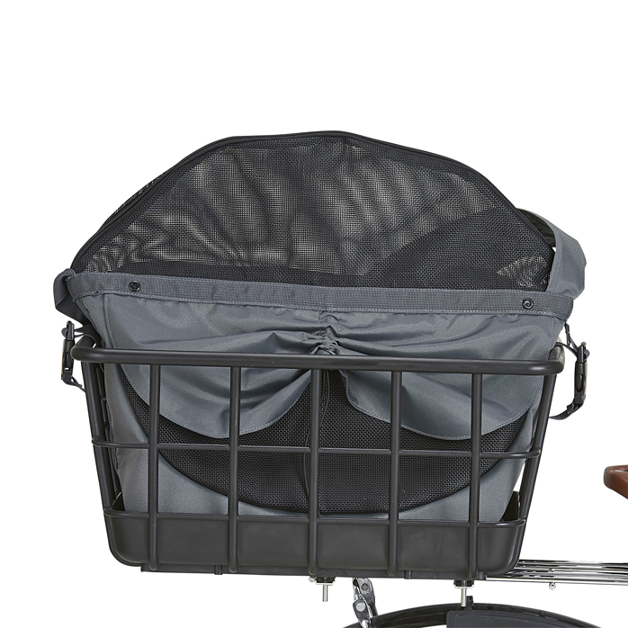 RIXEN & KAUL(リクセン&カウル)の中でも、ペット専用のバスケットが『ドギー』です。クリアフード付きで急な雨でも安心です。内部にはクッションと飛び出し防止のハーネスが付いています。